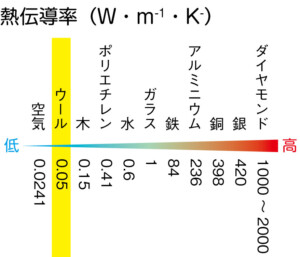 ウールの特徴は熱伝導率が低いので夏は涼しく、冬は暖かいんです。