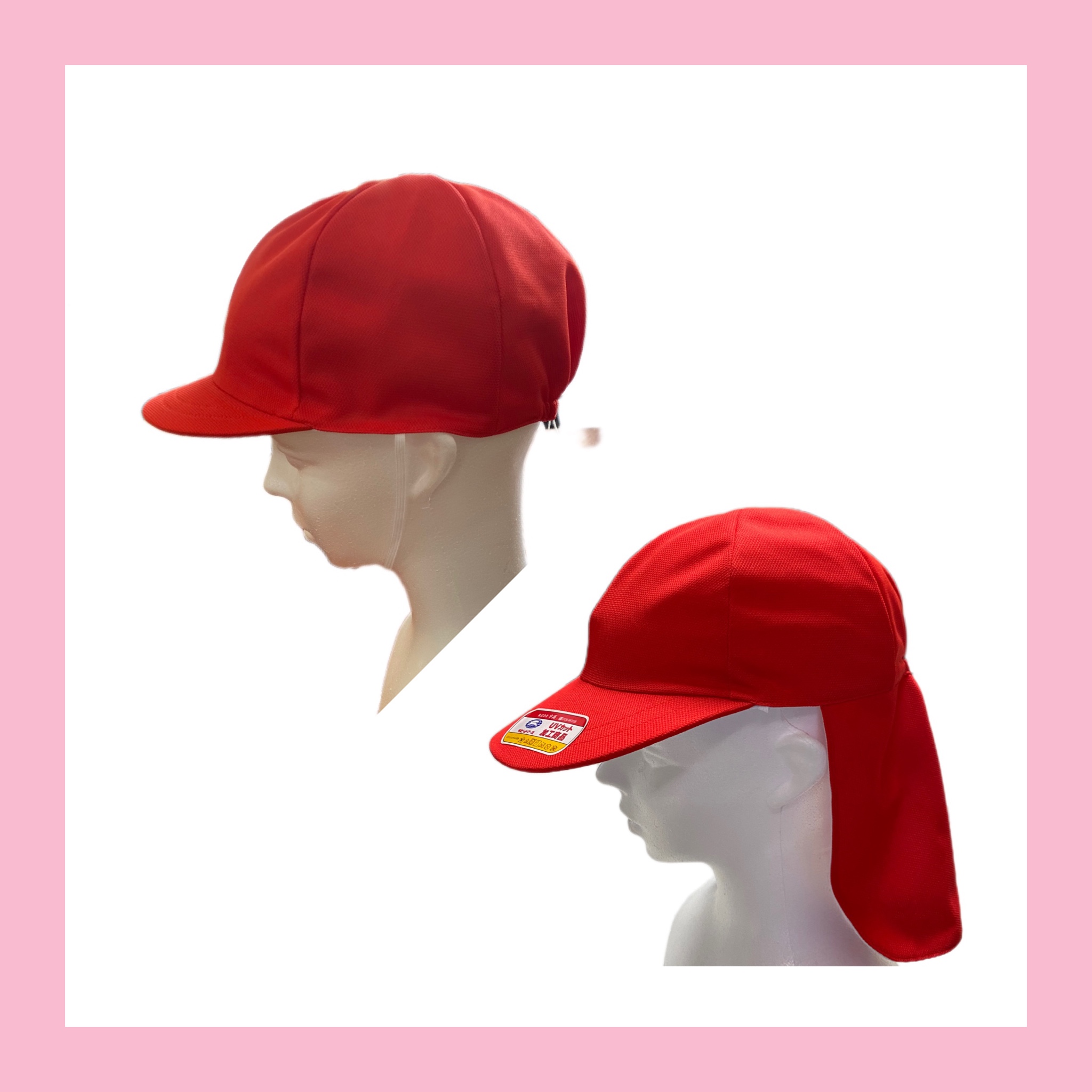 紅白帽子はメッシュ素材で通気性もよく柔らかく、つばも広め、UV仕様です。