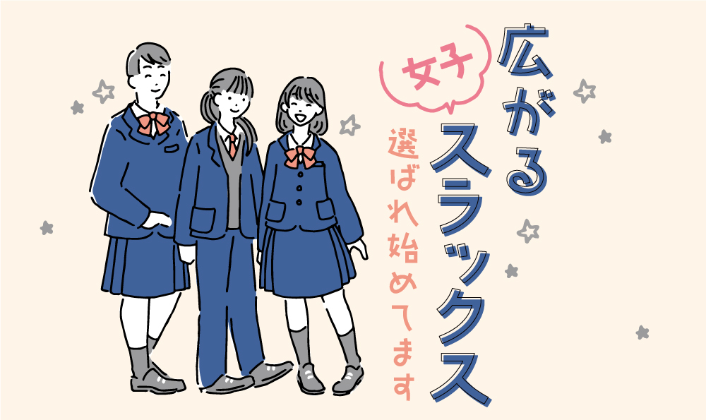 一般的に、女子用学生服の、イメージはスカートの、スタイルを思い浮かべる方がまだまだ多いと思いますが、今は女子用のスラックスの着用率がとても高くなってきているんです。